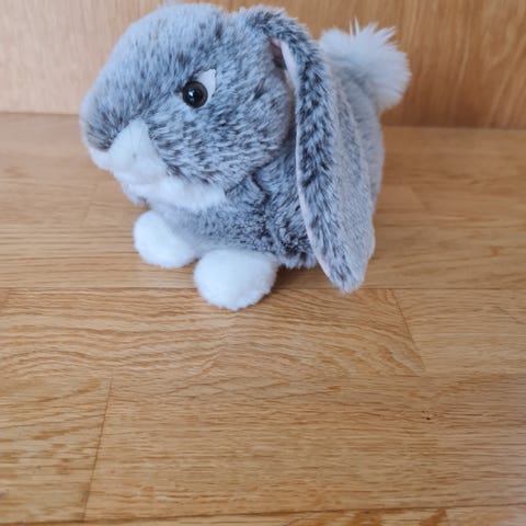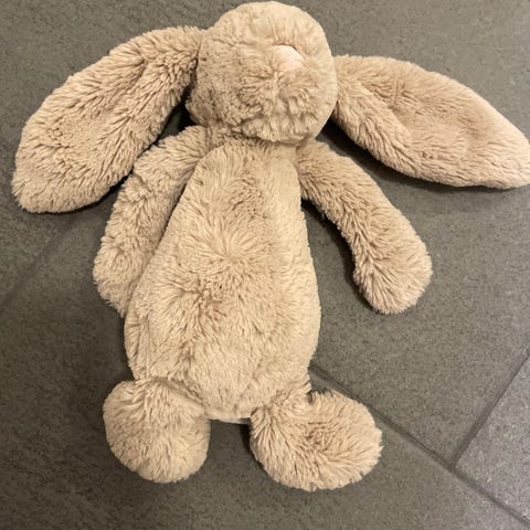 Bamsen er ikke brukt, men lappen er revet av.