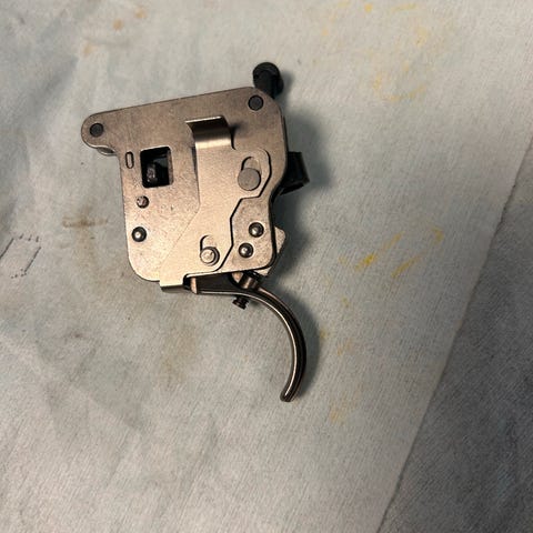 Nye triggere til overnevnte våpen. Har to stk. Kan ikke garantere pasform så sjekk bilde nøye mot din eksisterende trigger. Pris pr stk. Pris eks frakt.