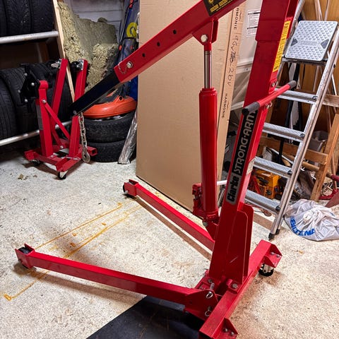 Motorstativ / Motorbukk. Dette er sammenleggbart for å oppta minst mulig plass når det ikke er i bruk.