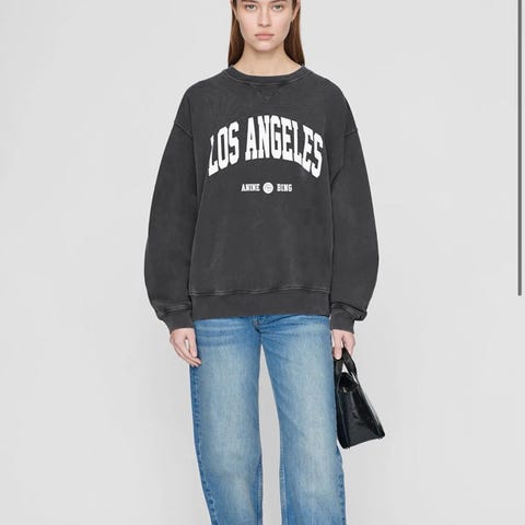 Ganni collegegenser for dame i størrelse S. Den har rund hals, lange ermer og trykk på brystet. Passer til hverdagsbruk og kan kombineres med både jeans og skjørt. Limited edition