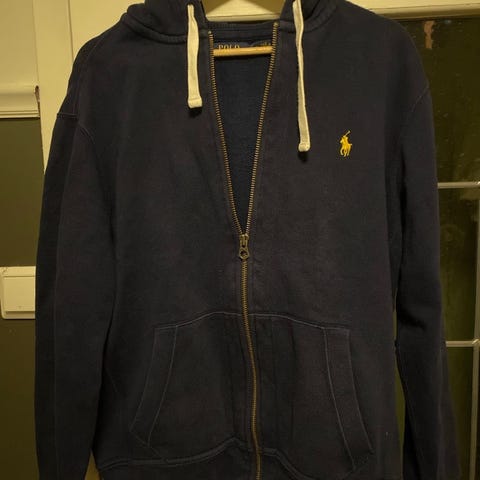 Ralph Lauren hettegenser for herre i størrelse L. Genseren er svart og laget av bomull. Modellen har hette og lange ermer. Passer til hverdagsbruk og fritid, og kan brukes alene eller som et lag over andre plagg.
