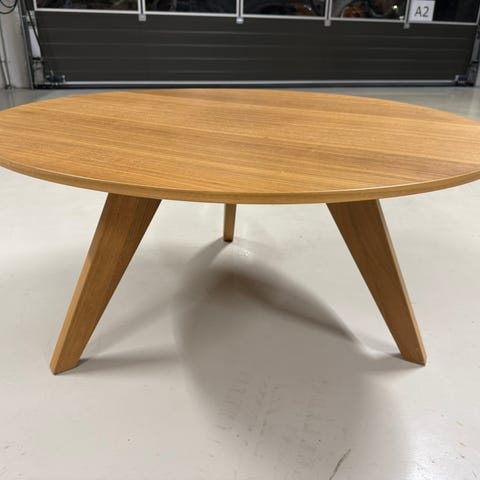 Et tidløst og elegant designbord med organisk form og praktisk åpen hylle. Bordet passer godt i moderne, skandinaviske og klassiske stuer.