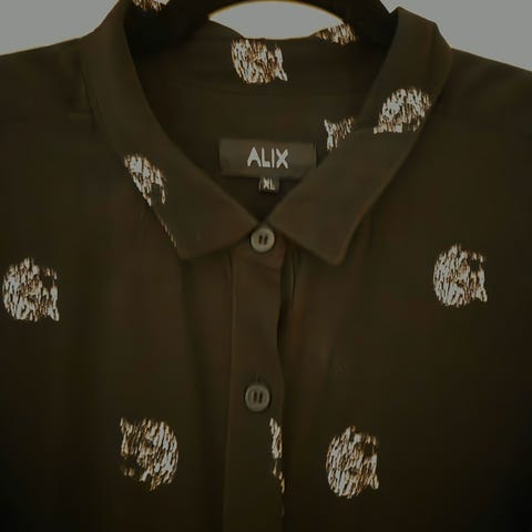 Liten splitt i sidene, knapper i front,deilig viskose stoff. 3/4 arm. Lommer i sidene