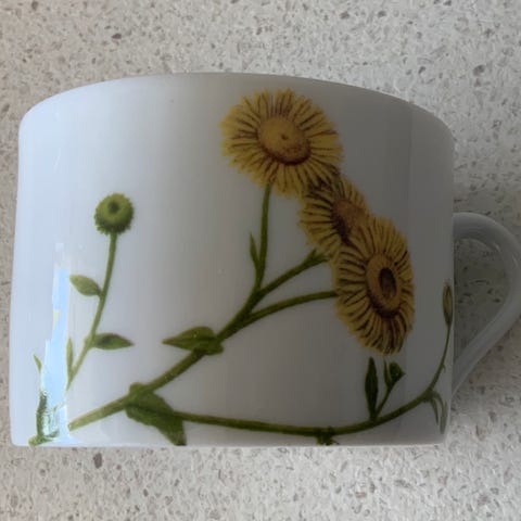 Limoges espressokopp med skål porselen hvit blå gullkant