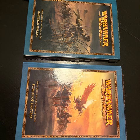 Warhammer The Game of Fantasy Battles regelbok. Bok med regler og bakgrunnsmateriale til Warhammer fantasy-figurspill. Inneholder spilleregler, hærinformasjon, illustrasjoner og eksempler på slagoppsett for bordspill i fantasy-universet Warhammer. Egnet som referanse for spillere som ønsker komplett regelverk til Warhammer fantasy battlespill.