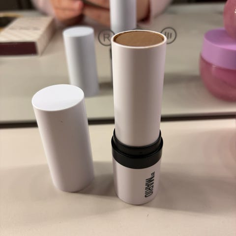 Makeup by Mario Sculpt & Pop On-The-Go sett. Settet inneholder én konturstick (Mini SoftSculpt Shaping Stick) i fargen Light Medium og én blushstick (Mini Soft Pop Blush Stick) i fargen Sweet Pink.
