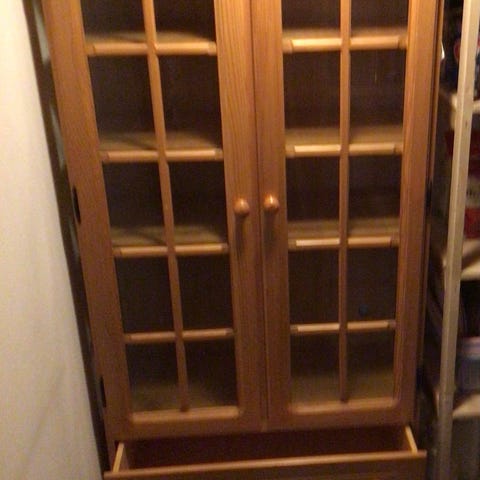 Solid og bra holdt høyde 133 cm bredde 87 cm dybde ca 53 cm med 2 store dype skuffer+ 4 litt mindre+4 store oppbevrings hyller farge lys anntikk hvit anntikk håndtak prisantydning / / Bud Må hentes