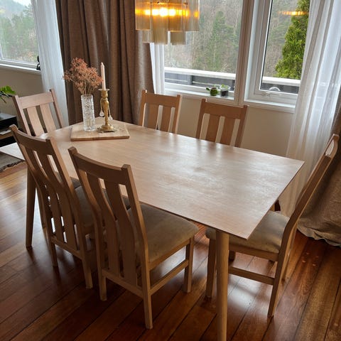 Spisebord eik med 6 stoler