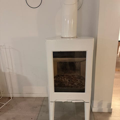 Brukt Scan 20 peisovn med kleberstein på sidene og topp som holder varmen lenge etter fyring.