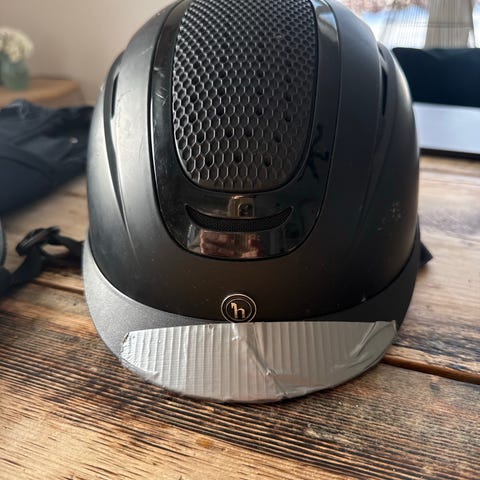 Selger min fint brukte Charles Owen ridehjelm, da den ikke passer til meg! Fint brukt å aldri hatt et slag i bakken. Ble kjøpt sent i 2024 for 4500kr. Strl 56