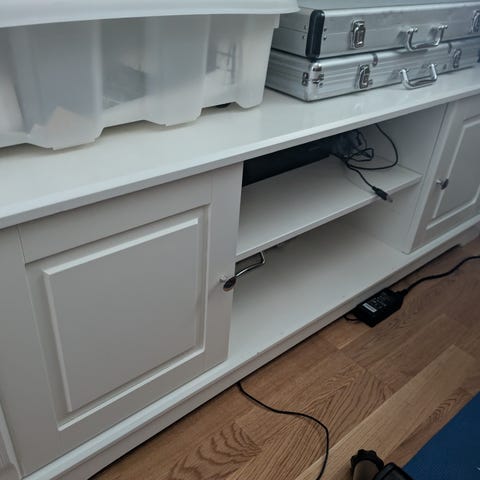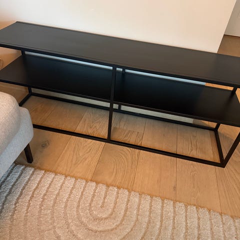 Sort TV-benk selges. Jeg vet ikke hvor den er kjøpt da jeg selv kjøpe den brukt.
