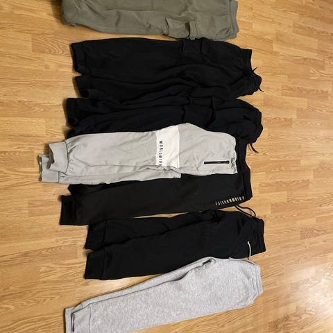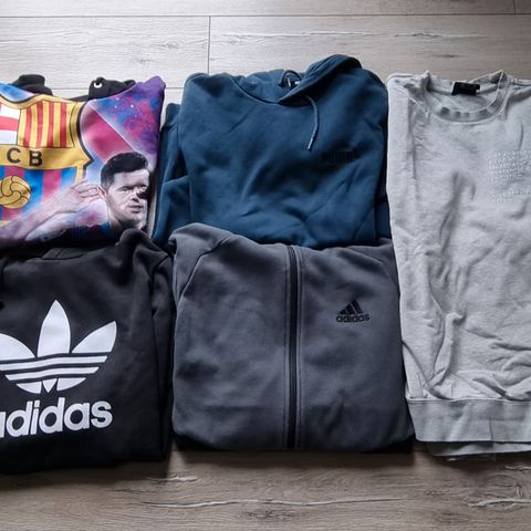 3 hettegensere fra hm, en collegegenser hm i str 158/164 og en hummelgenser i str 152. Puma jukse 13-14 år, 2 hm joggebukser i str 158/164.