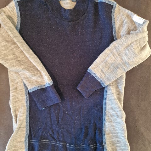 Janus genser i 100% merinoull. Genseren er i str 120, som tilsvarer 116-122. Genseren har ingen bruksmerker å ser helt ny ut. Lysebrun farge.