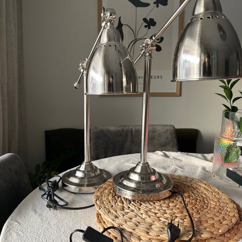 Enkel og justerbar bordlampe. Vet ikke hvor den er kjøpt, men den fungerer som den skal. Lyset kan gjøres sterkere og kaldere, og svakere og varmere. Ledningen er 2m lang.