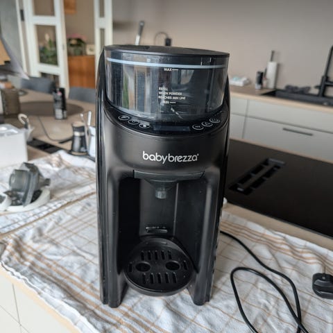 Melkemaskin som blander morsmelkerstatning og vann direkte i tåteflasken.