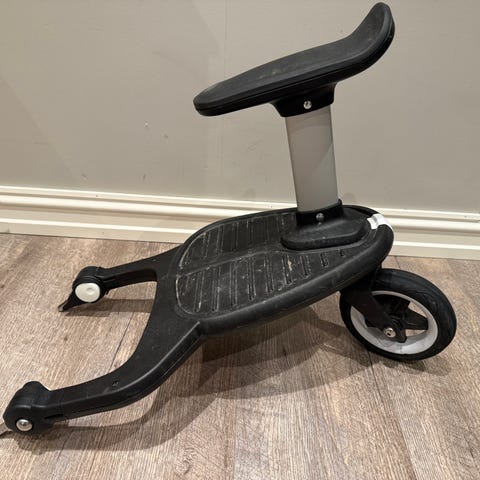 Bugaboo ståbrett til barnevogn med avtagbart sete. Brettet festes bak på vognen og gir et ekstra stå- eller sitteplass til et større barn.
