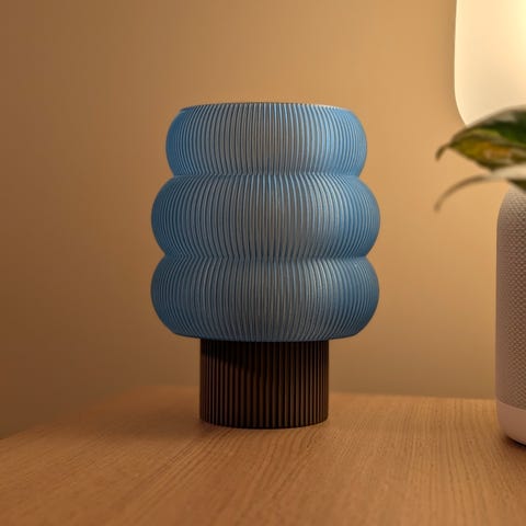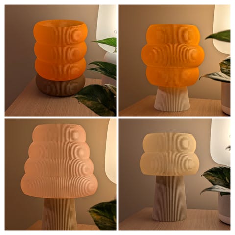 Lamper i forskjellige farger og former selges. Lampene kan lages med forskjellige baser og skjermer i forskjellige farger og størrelser. Sett sammen ditt design ved å velge fasong, størrelse og farge på både base og skjerm.