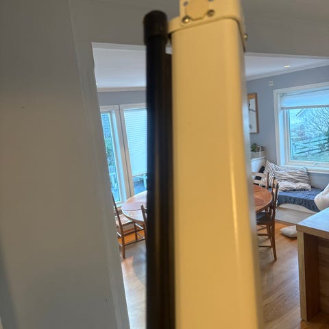 Lerretet fungerer som det skal, rulles jevnt opp og ned og har vært brukt i hjemmekino.