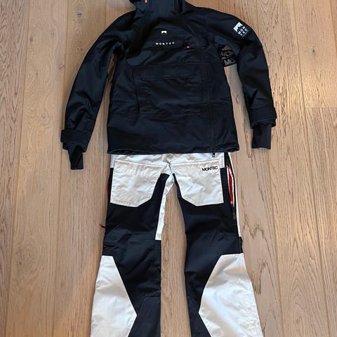 Grunnet feil størrelse selges ny Montec skijakke og bukse i størrelse XS. Jakken (brukt en gang) er svart og har fast hette. Den har flere glidelåslommer i front og justeringsmuligheter ved ermer. Ytterstoffet er i teknisk materiale egnet for ski- og snowboardbruk eller annen utendørsaktivitet i kaldt og vått vær. Montec-logo er plassert på bryst, erme og bak på hetten. Buksen ubrukt. Selges samlet. Ny pris er 5398,-