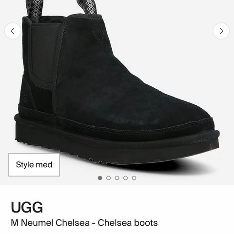 UGG støvler i størrelse 43. Modellen er en kort, ankelhøy støvel i grå farge med mykt, fôret innside for ekstra komfort og varme. Overdelen er laget i et semsket materiale med karakteristisk UGG-logo bak på hælen. Sålen er flat og robust, egnet til hverdagsbruk i kjøligere vær. Passer godt som varme fritidsstøvler.