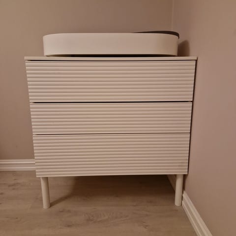 IKEA Sundvik stellebord i hvit farge. Stellebordet mangler stelleplate, men kan gjerne brukes som kommode. Selges derfor billig.