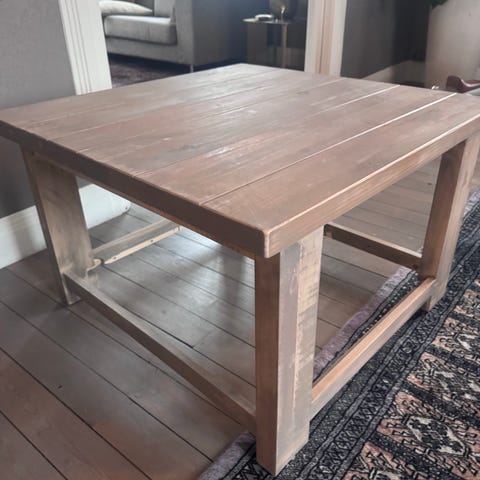 Bohus sofabord i lyst tre. Bordet er kvadratisk med ca. 91 x 91 cm bordplate og høyde på ca. 46 cm. Under bordplaten er det en romslig hylle for oppbevaring av bøker, magasiner eller annet. Designet er enkelt og funksjonelt med rette linjer og kraftige ben. Passer som salongbord i stue eller TV-stue.