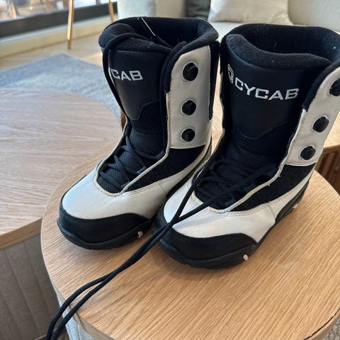 Cycab snowboardstøvler for herre i størrelse 37 (EU). Modellen har tradisjonell snøring og er laget i syntetiske materialer. Fargekombinasjon i grå og svart med gummisåle med grovt mønster for godt grep. Støvlene er polstret rundt ankel og skaft for økt komfort i bindingene. Egnet til bruk med standard snowboardbindinger for barn i tilsvarende størrelse.