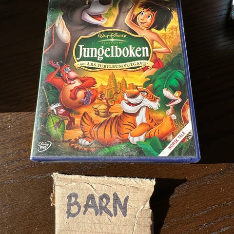 Disney Jungelboken barnebok for barn. Boken er illustrert med figurer fra den kjente historien om Mowgli, Baloo og andre karakterer fra jungelen. Egnet som høytlesningsbok eller for barn som leser selv, avhengig av leseferdighet og alder.