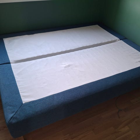2 senger (rammemadrass) som ble kjøpt i et sett (dobbeltseng) - Overmadrass er inkludert.