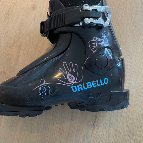 Dalbello skistøvel for barn i grønn og svart farge med justerbare spenner i metall. Støvelen har utskiftbare såler med gripepartier i kontrastfarge for bedre feste ved gange. Egnet til alpint bruk for barn, med hard ytterskall som gir støtte og kontroll.