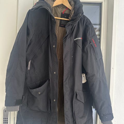 God vinterparkas fra Didrikson. Mørk mørk blå, str 38 (passer S/M). Fôret og god i vær og vind. Mange fine detaljer . Lengde på 162 cm høy dame ; ca ned til knær. Kan sendes mot porto . Strøken .