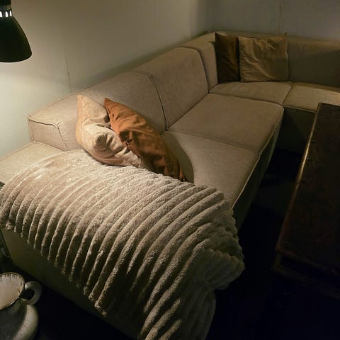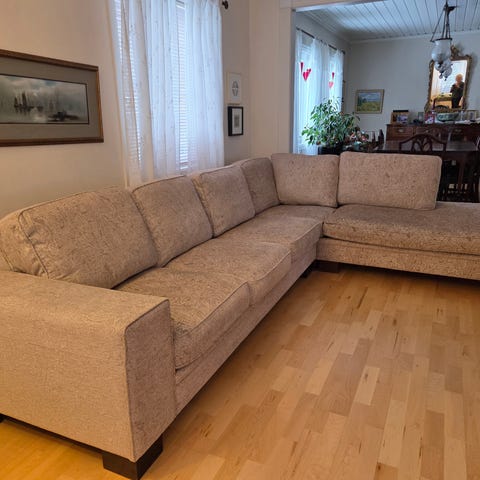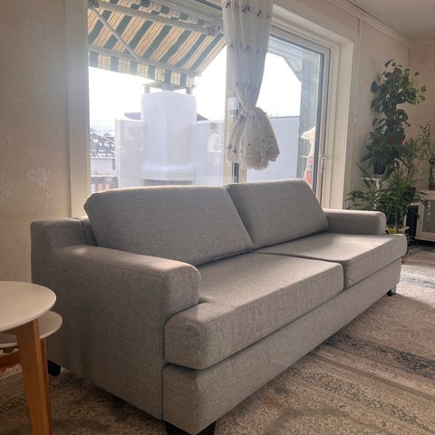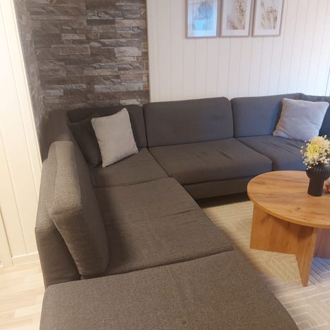 Her er sofaen ny (bare i grå i stedet for beige)