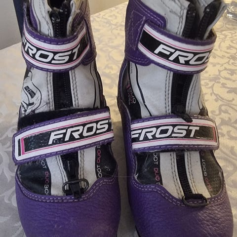 Pent brukte. Innvendig snøring og lukkes med glidelås og borrelås.