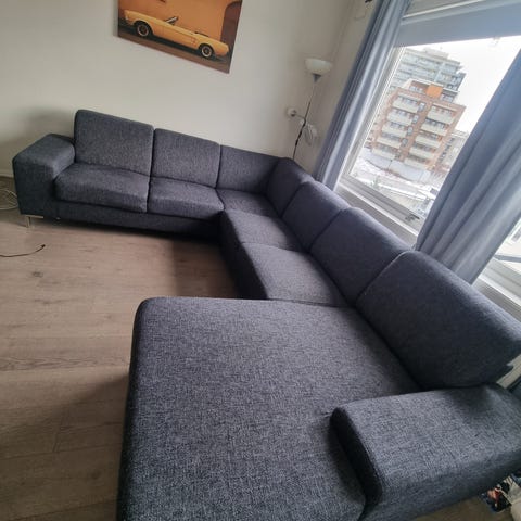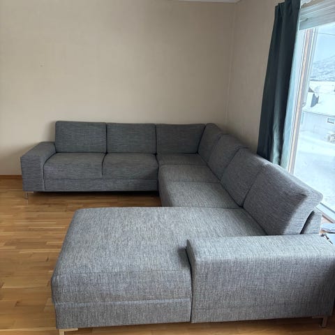 John hjørnesofa selge pent bruk, nypris 25 000kr. Oppsett sofa i 3-deler (dybde x lengde) = 120x151cm + 120x95 + puff 120x55 cm.