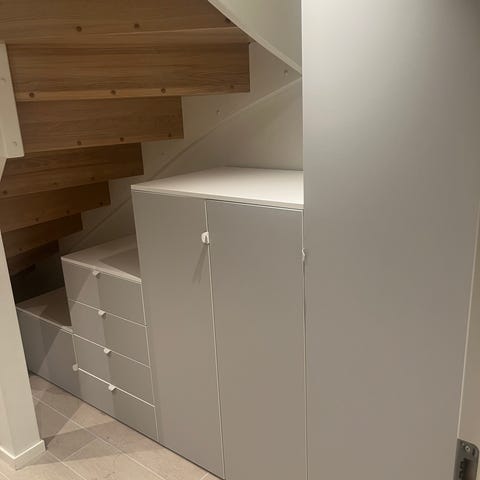 IKEA Oppbevaringsskap selges samlet. Lavt skap med benkeplate: H-67cm, B-1.80m, D-42