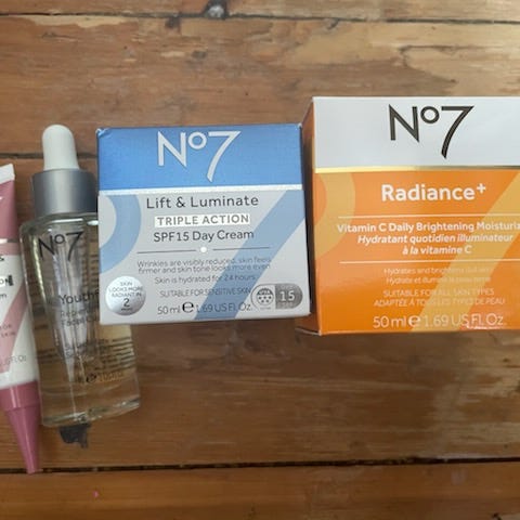 Selger en effektiv anti-age kveldsrutine fra No7 med nattserum, booster serum og mini retinol – helt nye og uåpnede produkter.
