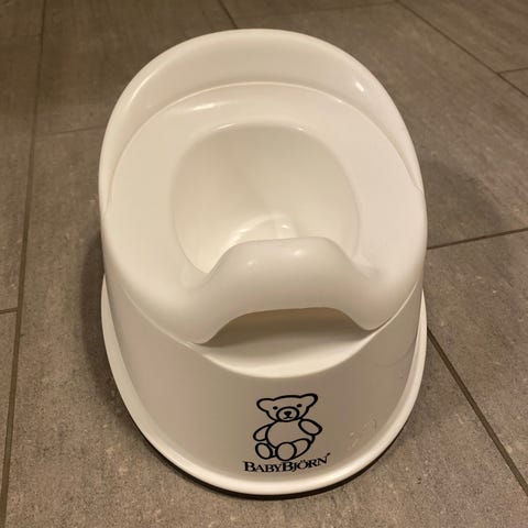 Babydan potte stol i hvit og grå farge. Barnestolen er utformet som et lite toalett med ryggstøtte og lokk. Innsatsdelen kan tas ut for enkel tømming og rengjøring. Egnet til bruk ved do- og pottetrening av små barn. Laget i plastmateriale som er lett å holde rent.