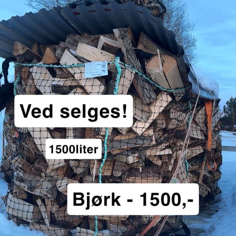 1500l sekk med bjørkeved selges for 2500 kr fritt levert rundt Årnes i nes kommune.