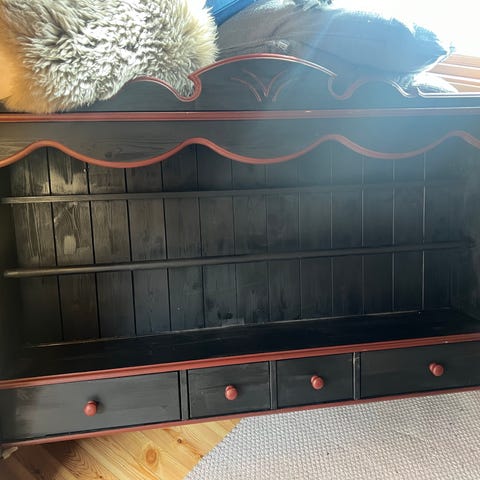 hyllemøbel i tre med skuffer rødbrun