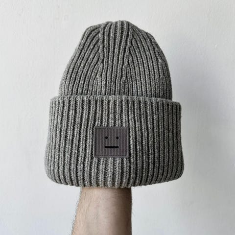 Selger en Acne Studios Large Face Logo Beanie i grå. Kjøpt hos Acne Studios i Stockholm. Denne luen er helt ny og ubrukt 🩶
