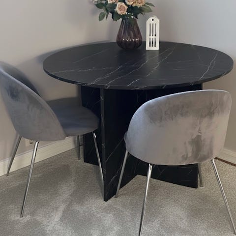 Rund Spisebord marmor vibe på 110cm med sølv bunn