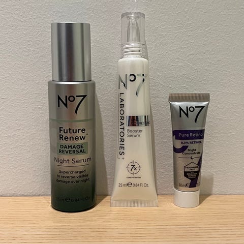 Selger en fin dagpakke fra No7 Future Renew Damage Reversal – alt er helt nytt og ubrukt. Dagkrem med SPF40, øyeserum og lip oil ✨