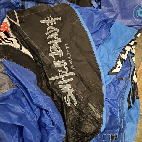Denne er helt ny og ubrukt. Dette er en reklamasjon pga fargeforandringer i stoffet og har siden det ligget urørt i en bod. Dessverre har noen lånt ei blære i den ene strutten, så det må man lage seg eller kjøpe om man tenker å bruke den. Ellers er det masse fint rip stop nylon til syprosjekter el lignende.