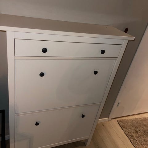 Selger en veldig pent brukt kommode til en veldig billig penge. Den har tidligere blitt brukt som garderobeskap til barn, men fungerer like godt som ett skoskap med mye oppbevaringsplass.