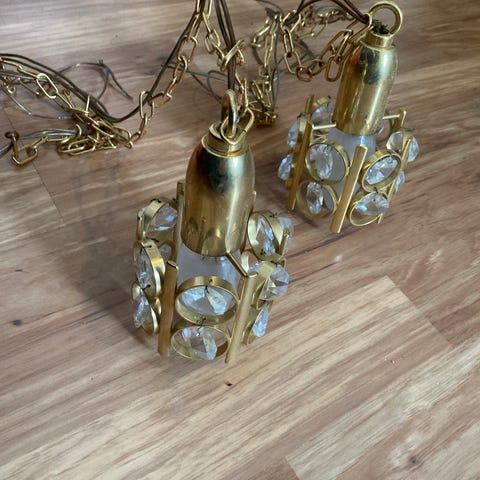 2 stk vintage prismelamper i krystall og messing