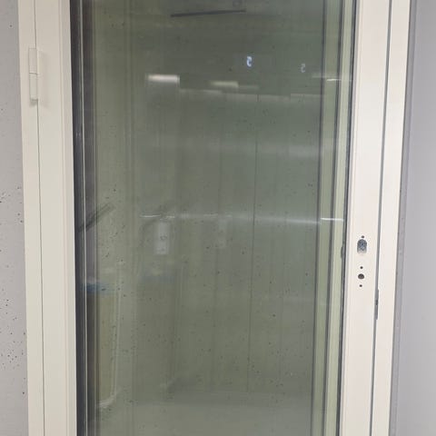 Døren er kraftig, stabil og godt isolert, og passer perfekt som terrassedør eller utgang til hage/balkong. Normal bruksslitasje. Betyr ingenting et strøk maling blir som ny