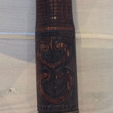 Liten gravering på slira som lett kan poleres bort om ønskelig . Kan godt byttes i eldre bajonett ,eldre slirekniv ,dolk osv ..gjerne med rep behov.