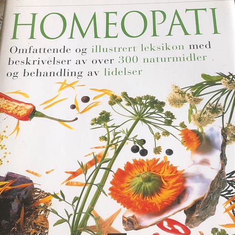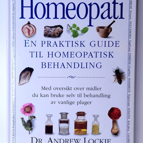 Selger en stk bok som heter "Den store boken om homepati for kr 100,-.