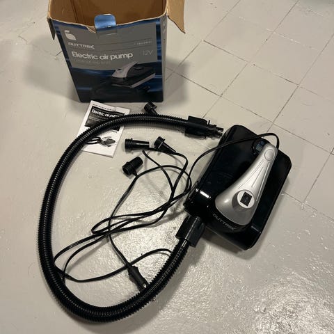 Bestway Air Hammer håndpumpe på 36 cm i svart plast. Pumpen er en manuell fot- og hånddrevet pumpe med T-håndtak og stabile fotplater for bedre støtte under pumping. Leveres med slange og flere ventiler/munnstykker som passer til ulike oppblåsbare produkter som luftmadrasser, badeleker og lignende. Egnet til bruk både inne og ute der det trengs en enkel, manuell luftpumpe.