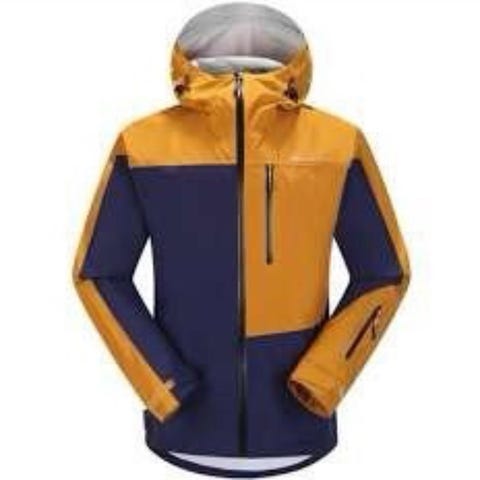 Salomon jakke for herre i blå farge. Jakken har hette, hel glidelås i kontrastfarge foran og flere glidelåslommer på bryst og sider. Ermene har justerbare avslutninger og tommelhull i mansjettene. Egnet som ytterjakke til utendørsaktiviteter og fritidsbruk.